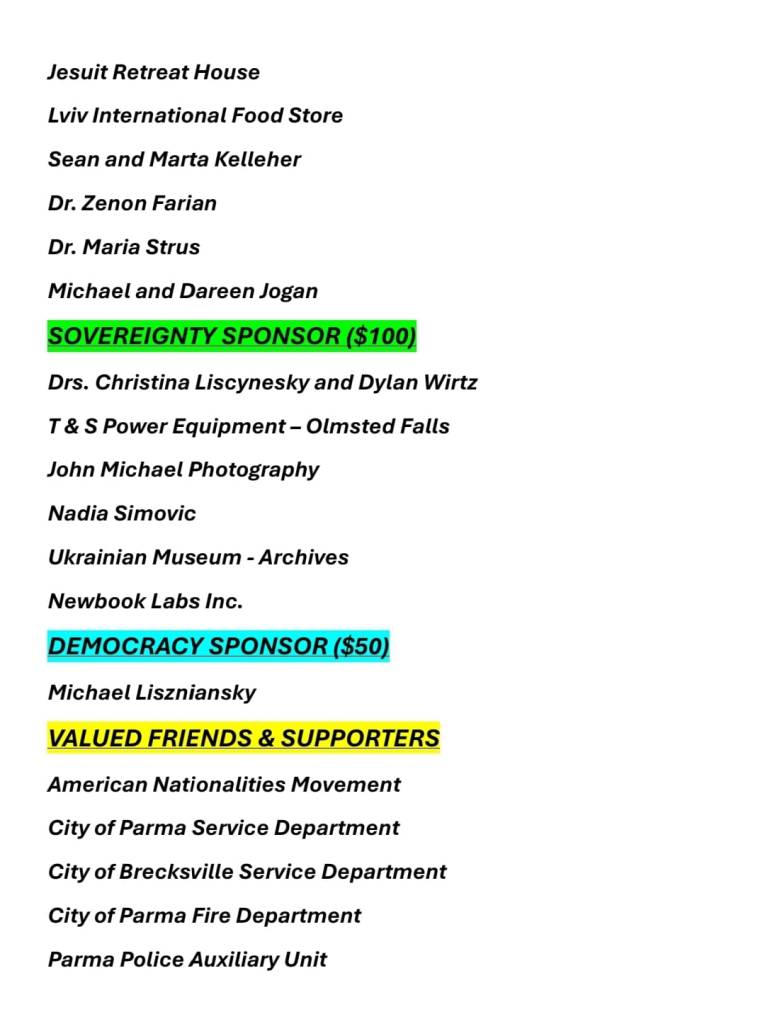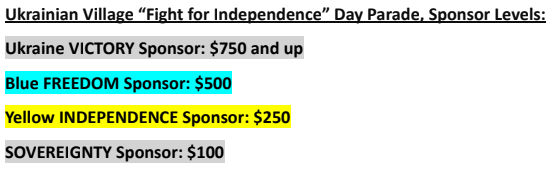 With the 2024 Ukrainian Village Independence Day Parade almost upon us, we’d like to make a shout-out to all of our very generous business and individual sponsors from 2023!!!